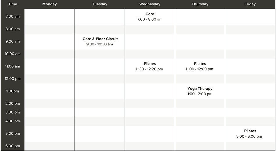 All classes are taken by Karen Carmichael, a Registered Physiotherapist with 30+ years of experience.